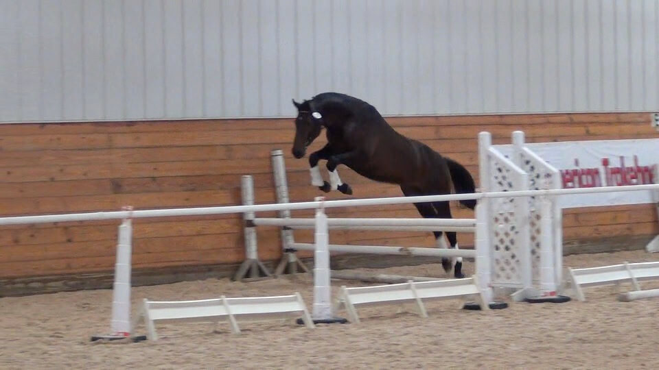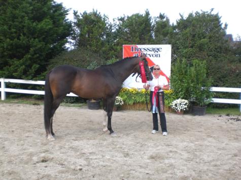 is a 7 year old mare by Tribute out of American Beauty by Graditz *E*. Graditz *E* goes back to the legendary Trakehner Show Jumper Abdullah*Pg*E*. Though Avianna is currently jumping 2´3", her forte is Dressage. This mare has a lovely forward overreaching walk with a big, forward trot with suspension. Her canter is uphill and ground covering. Consistently scoring 8s at schooling shows (with graduates of the ´L´ program and ´L´ judges with disctinction) at Training Level 1-4, with consistent comments of "lovely mare, big movement, and lots of ability and potential". Avianna will be a very successful upper level Dressage horse.